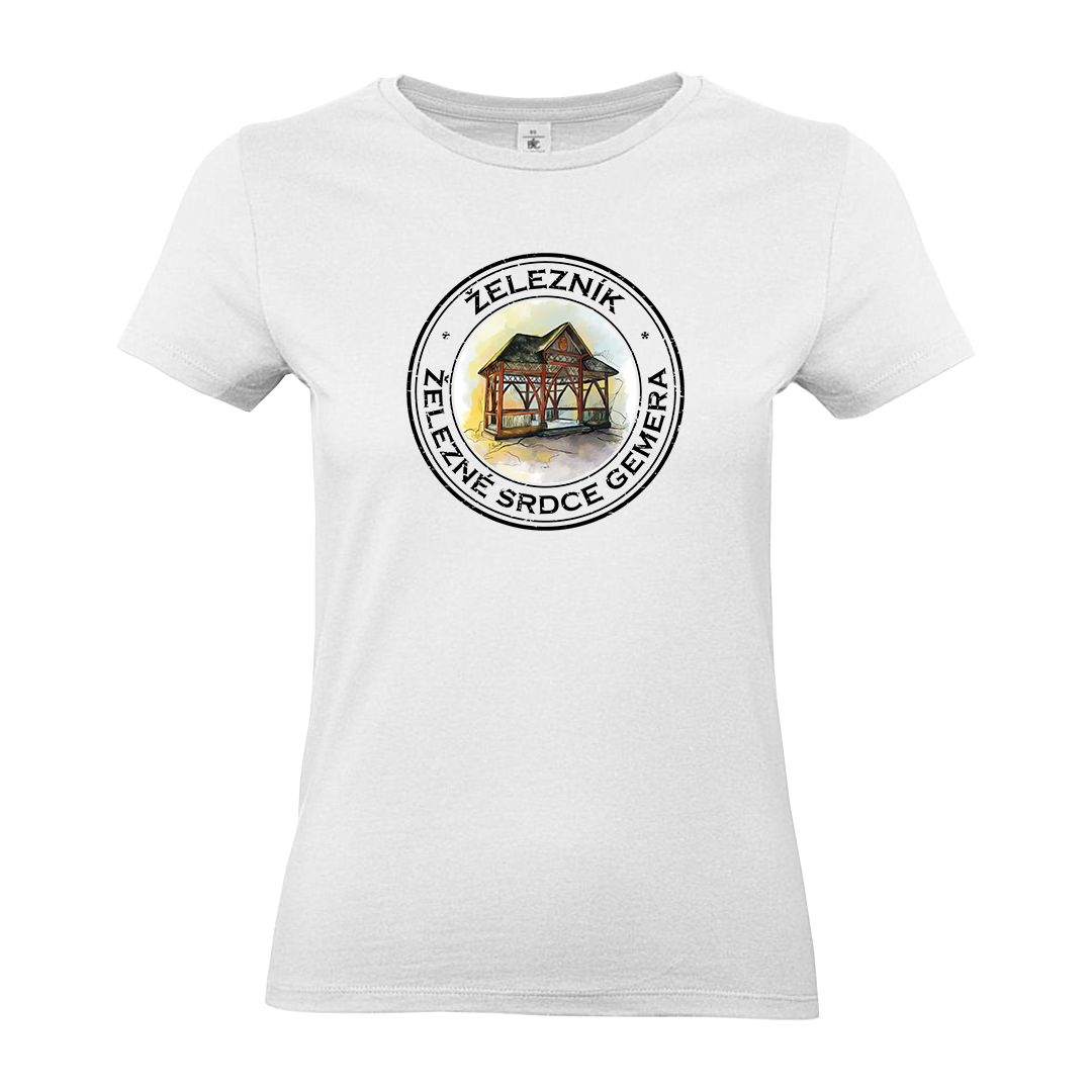 Biele tričko s potlačou pestrofarebnej pečiatky s Hudobným altánkom na Kríži. 100% bavlna.