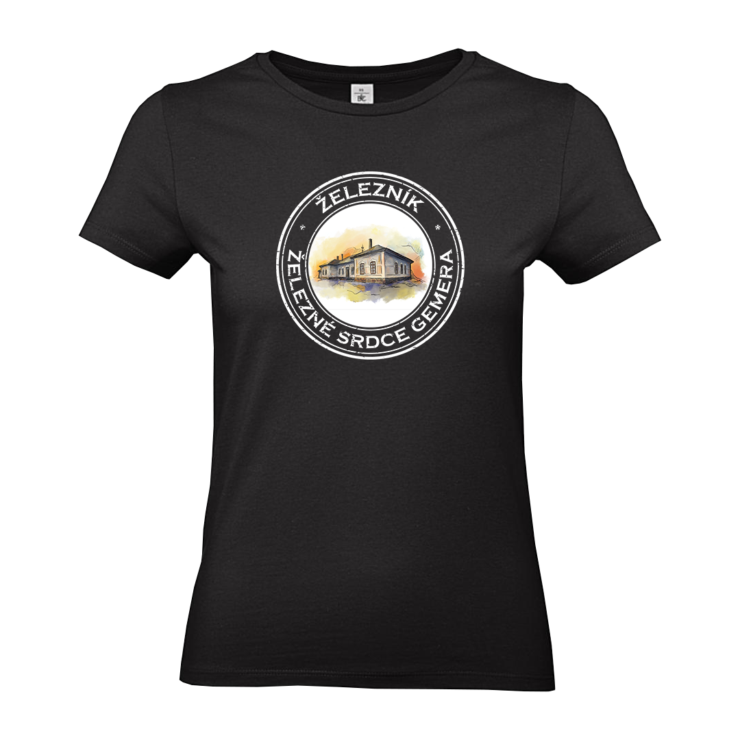 Čierne tričko s potlačou pestrofarebnej pečiatky s kinom Stachanov na Ladislave. 100% bavlna